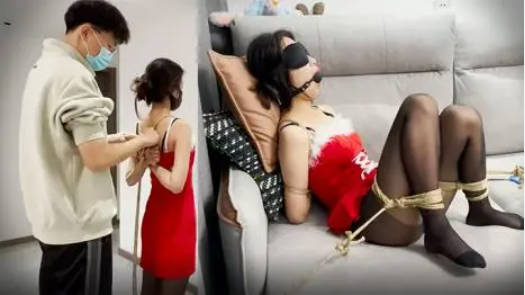 姐夫草小姨子,轻SM情趣装捆绑调教骚母狗,栓起来干她,口交大鸡巴玩她奶子,床上各种姿势暴力抽插